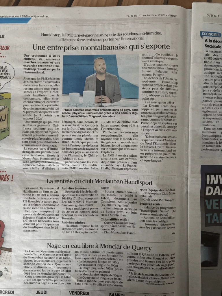 septembre 23, 2025Nous sommes fiers de partager que Humidistop a récemment été mis en avant dans Le Petit Journal.